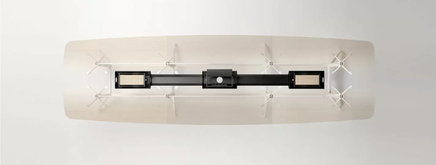 Доступ к гаджетам является необходимостью в конференц-залах и комнатах для совещаний. Поэтому в столах Drone предусмотрена система кабель-менеджмента, обеспечивающая грамотную организацию проводов и визуальную «чистоту» рабочего пространства, при этом упрощая подключение устройств в сеть и подачу питания.