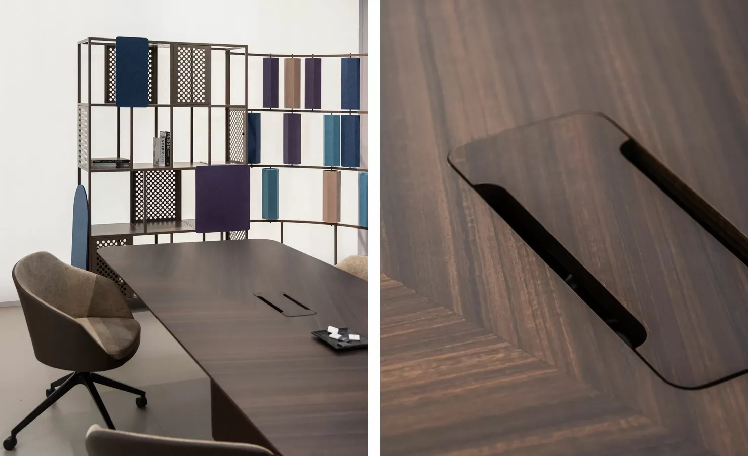 Главной задачей было продемонстрировать принцип универсальности. Посетители воочию убедились, как представленная мебель интегрируется в любую среду — от корпоративного офиса до частного интерьера. Гибкость отделок и богатство материалов (шпон, эмаль, металл и камень) — это основа индивидуальных решений, которые мы воплощаем на собственном производстве полного цикла площадью 30 000 м2 в Щёлково.